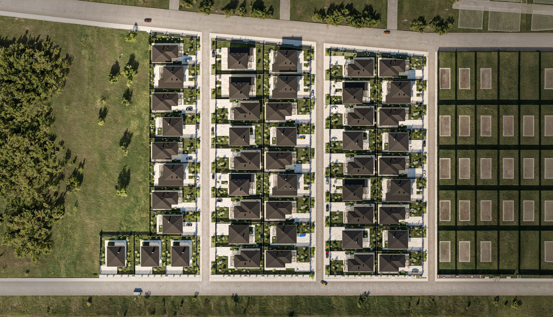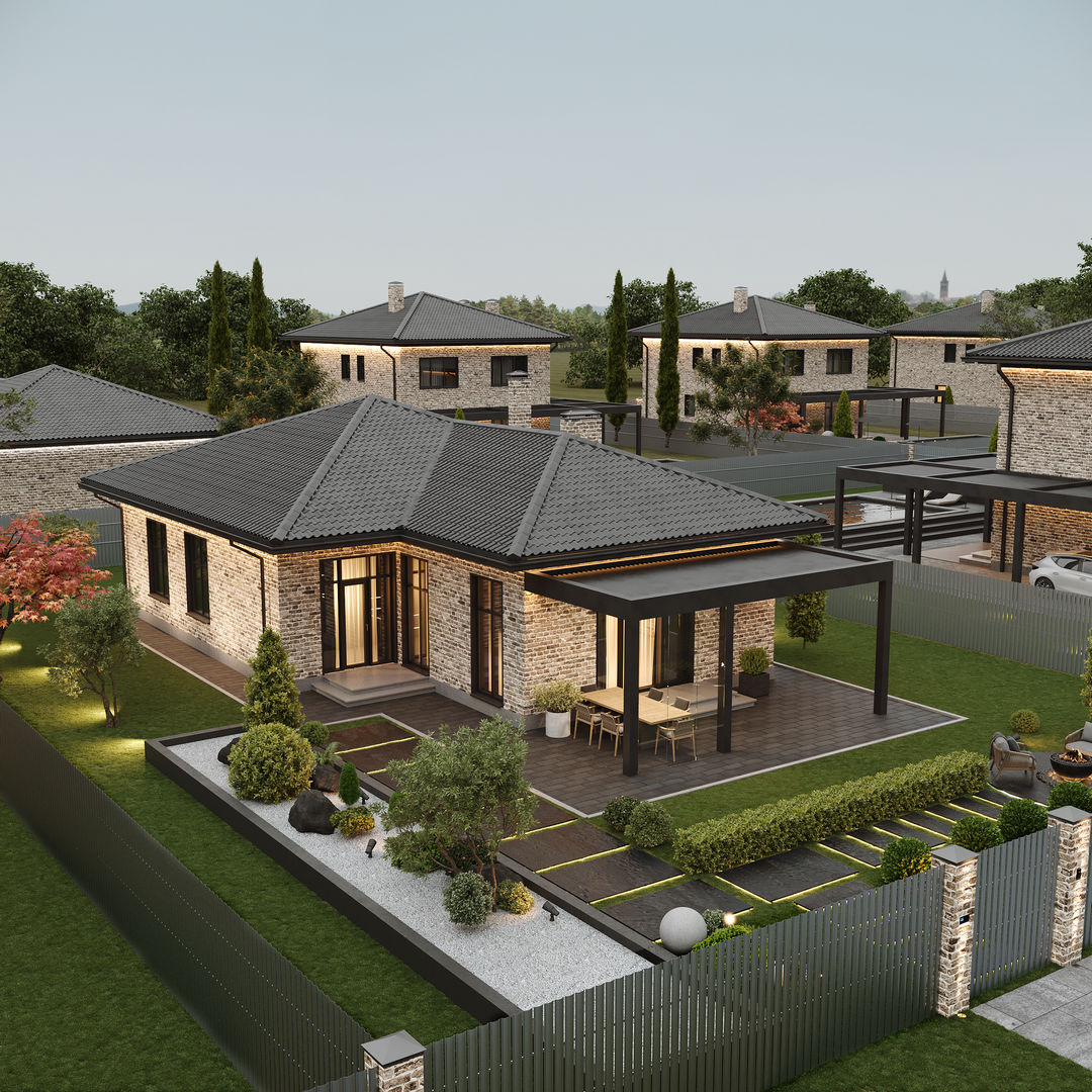 Закрытая территория, детские и спортивные площадки, комфортные зоны отдыха, въездная прогулочная аллея, разнообразные объекты торговли и услуг.